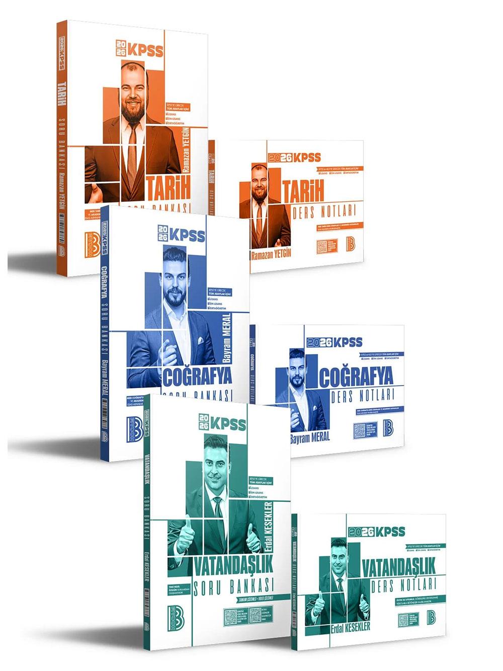 2026 KPSS Genel Kültür'de tam başarıyı hedefleyenler için Benim Hocam'ın efsane kadrosu Ramazan Yetgin, Bayram Meral ve Erdal Kesekler'in hazırladığı en kapsamlı set! Bu 6 kitaplık dev set, "Önce Öğren, Sonra Pekiştir" mantığıyla, Tarih, Coğrafya ve Vatandaşlık derslerinin her biri için bir adet Ders Notları ve bir adet Soru Bankası kitabını bir araya getirir. Hocaların video dersleriyle %100 uyumlu Ders Notları ile konuları en temelden ve en doğru şekilde öğrenecek, ardından bu bilgilerini yine aynı hocaların hazırladığı binlerce özgün ve çözümlü soruyla Soru Bankalarında pekiştireceksiniz. Konu anlatımı ve soru pratiğini aynı yazarın tutarlı anlatımıyla sürdürerek Genel Kültür derslerinde hiçbir eksik bırakmayın!