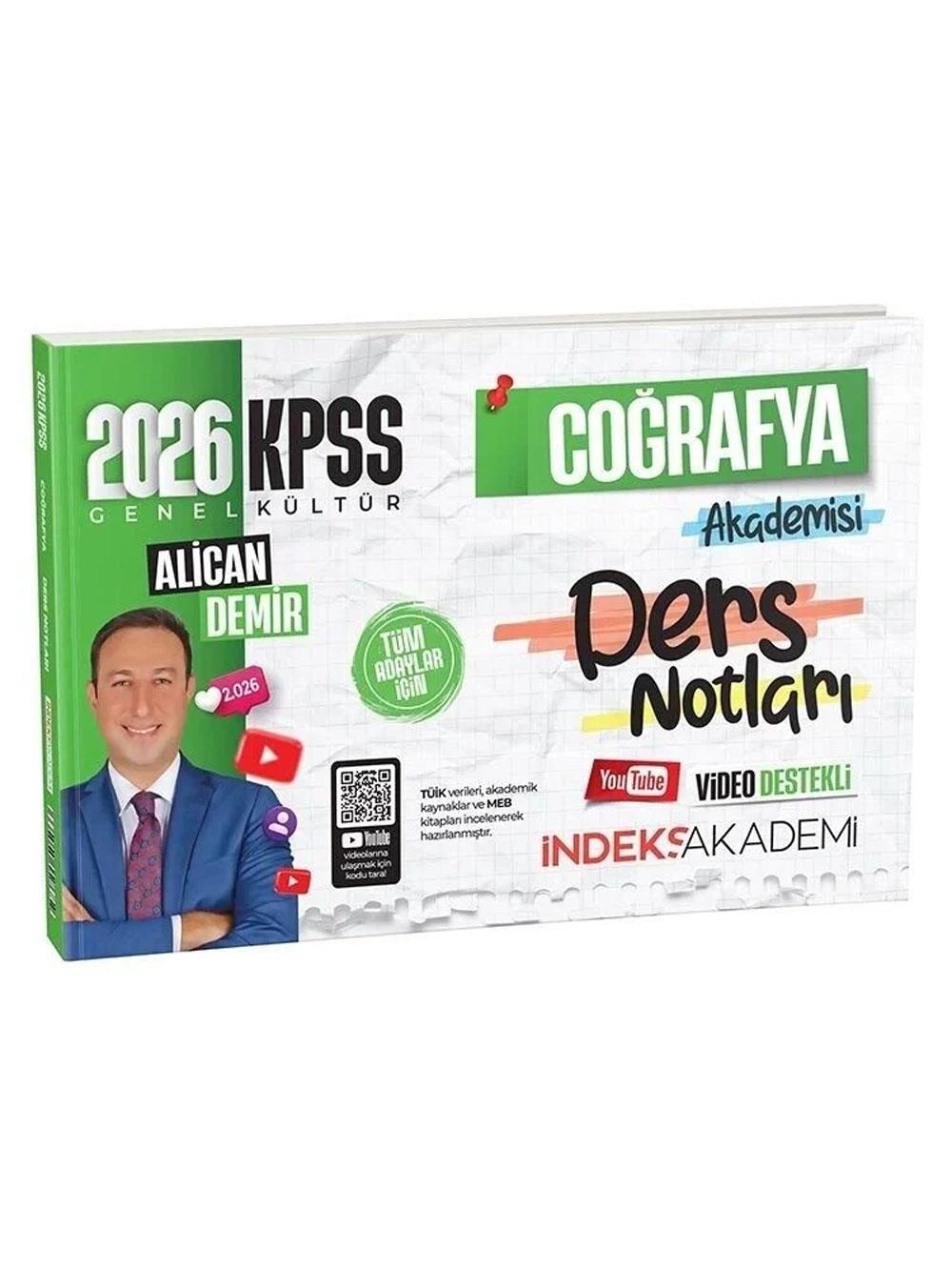 KPSS Coğrafya'nın en güncel ve en görsel konularını alanının uzman ismi Alican Demir'in video dersleriyle öğrenen adaylar için özel olarak tasarlanmış bu kaynakla tanışın! İndeks Akademi'nin "Coğrafya Akademisi" serisinin bir parçası olan bu eser, Alican Demir'in online video derslerinin birebir yazılı metinlerini ve görsellerini içerir. Dersleri izlerken harita çizmek ve sayfalarca not tutmakla vakit kaybetmeden, enerjinizi tamamen konuyu dinlemeye ve anlamaya odaklamanızı sağlar. Derslerdeki tüm önemli noktaları, güncel bilgileri ve kritik haritaları düzenli bir formatta sunan bu notlar, aynı zamanda sınav öncesi yapacağınız hızlı tekrarlar için de en pratik materyaldir. Hem ders takibi yapmak hem de konuları kalıcı hale getirmek için bu video ders notları, 2026 KPSS hazırlığınızın vazgeçilmezi olacak.