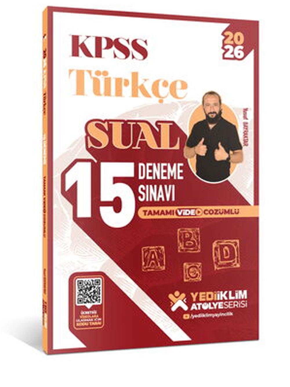 Türkçe bilginizi en incelikli "Sual"lerle (sorularla) test etmeye hazır mısınız? Yediiklim'in uzman yazarı Yusuf Bayraktar, "Atölye Serisi" kapsamında hazırladığı "Sual" denemeleriyle 2026 KPSS adaylarını en zorluya hazırlıyor. Bu kitap, tamamı ÖSYM'nin güncel soru formatıyla birebir uyumlu, 15 adet özgün Türkçe deneme sınavı içerir. Her bir deneme, Paragraf, Dil Bilgisi ve Sözel Mantık alanlarında sizi gerçek sınavda karşılaşabileceğiniz tüm senaryolara karşı hazırlamak için titizlikle oluşturulmuştur. Kitabın en büyük özelliği ise tamamının video çözümlü olmasıdır. Her sorunun çözümünü uzmanından dinleyerek sadece doğru cevabı değil, sorunun çözüm mantığını da eksiksiz bir şekilde öğrenirsiniz.